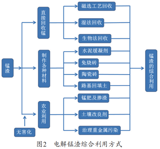 錳渣利用方式見圖2,包括從錳渣直接回收各種有價元素 以及利用電解錳渣制備各類工農(nóng)業(yè)材料。